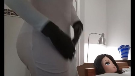 Betty & Miki Pt1! Meet your real rubber girlfriend, female masked Betty in her white dress!