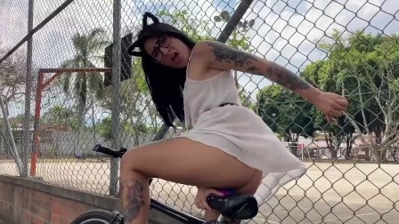 How to ride a bike while i fuck my pussy with a dildo.